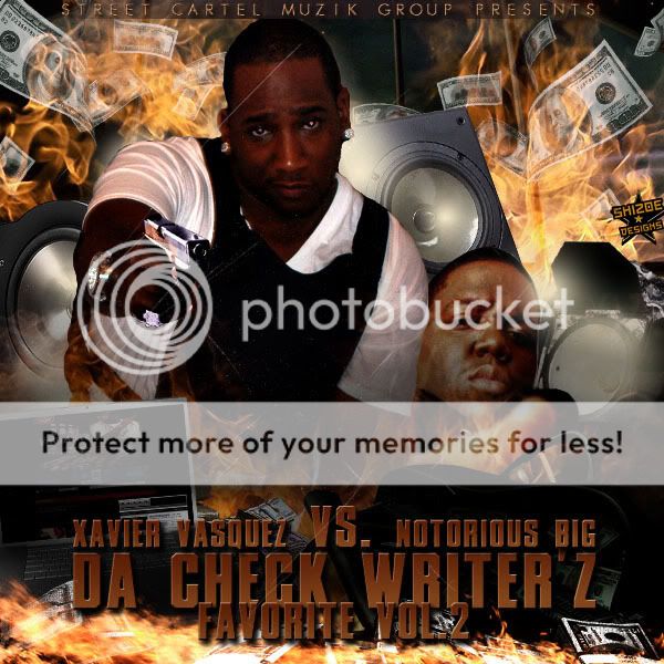 HEY PEOPLE BEIN THT I'M THE BOSS & EVERYTHING ON THIS BLOG SITE GOTTA GO THRU MI WHY NOT USE PRODUCT PLACEMENT ON MY OWN SHYT U DIG.THE MIXTAPE IS OUT CALLED DA CHECK WRITER'Z FAVORITE VOL.1 & IT'Z AVAILABLE FOR FREE DOWNLOAD FEATURING AKON,SACARIO,NOTORIOUS B.I.G. & 50 CENT JUST CLICK ON THE MIXTAPE COVER SO ENJOY STAY TUNE FOR THE NEXT TITLED XAVIER VASQUEZ VS. THE NOTORIOUS B.I.G BUT KEEP IN MIND IN NOWAY SHAPE OR FORM AM I SAYIN I'M GREATER THAN B.I.G. THIS IS JUST A LYRICAL EXERCISE I SEE'S NO COMPETITION SO WHO BETTA 2 SPAR WITH ?